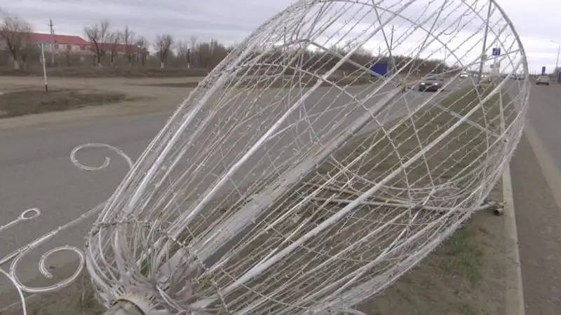 Конструкции с декоративной иллюминацией были установлены вдоль трассы, но не выдержали порывов ветра, сообщает Zakon.kz.