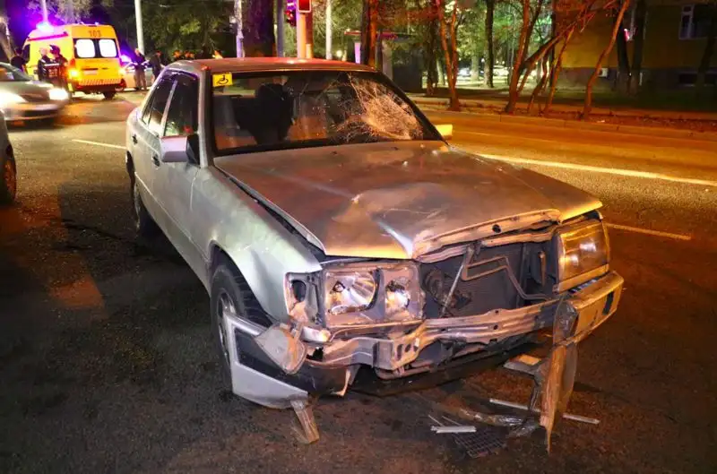 В ночь на девятое апреля в Алматы на перекрестке улиц Гоголя и Пушкина столкнулись автомобиль Mercedes и мопед. В момент аварии автомобиль двигался в восточном направлении по Гоголя и совершал левый поворот на улицу Пушкина. Мопед ехал навстречу Mercedes по автобусной полосе.