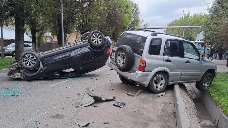 Автоледи потеряла сознание и совершила ДТП с опрокидыванием в Алматы