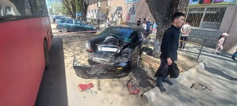 ДТП с участием автобуса произошло сегодня около 13:00 на улице Курмангазы напротив кафе "Бибигуль".