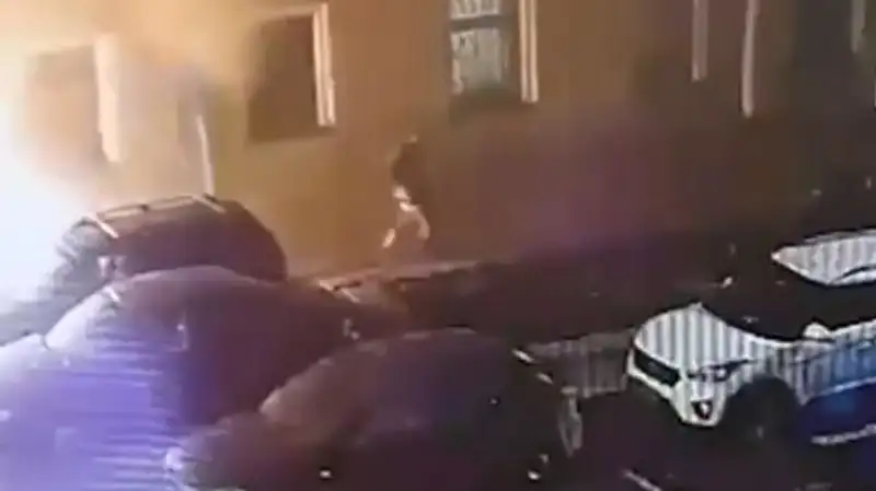 На кадрах видно, как пострадавший в панике убегал от места вспышки, одновременно пытаясь сбить огонь со штанин. Мужчина получил ожоги ног и живота, сообщает "Фонтанка".