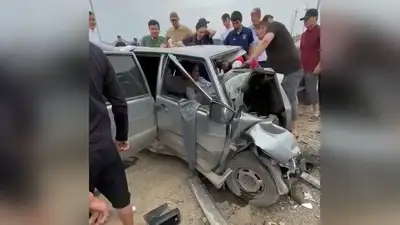 Как говорилось в описании ролика, авария произошла в селе Кызылбалык Атырауской области.