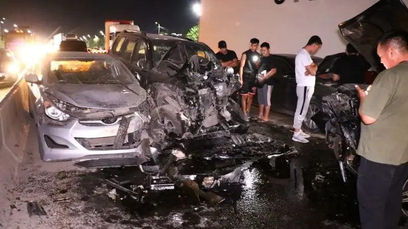 По его словам, перед ним резко затормозил автомобиль, поэтому, избегая столкновения, он вырулил на полосу встречного движения и на полном ходу протаранил движущийся навстречу автомобиль Toyota Prado.