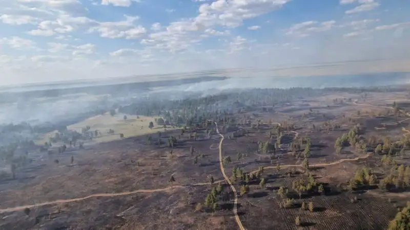 Площадь составляет 350 га, из них 150 га – лесопокрытая площадь, передает пресс-служба МЧС РК.