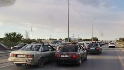 Пробка от Конаева тянулась вплоть до самого заезда в Алматы.