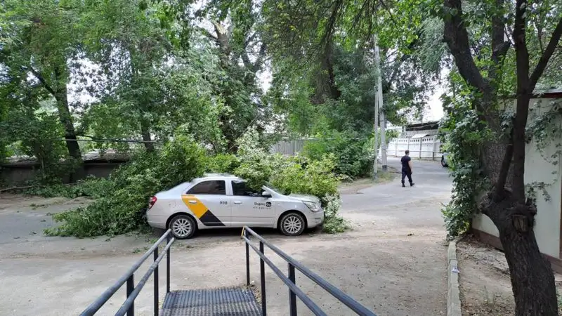 Как рассказали очевидцы корреспонденту Zakon.kz, 20 июля на улице Староэлеваторской в Турксибском районе Алматы дерево упало на автомобиль такси, едва не убив водителя и пассажирку.