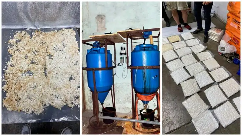 В ходе обысков обнаружено и изъято около 100 кг психотропного вещества "а-PVP", прекурсоры, а также современное лабораторное оборудование, предназначенное для производства синтетических наркотиков. Цех был расположен на территории площадью 0,5 га.