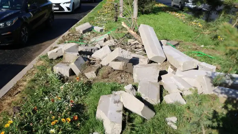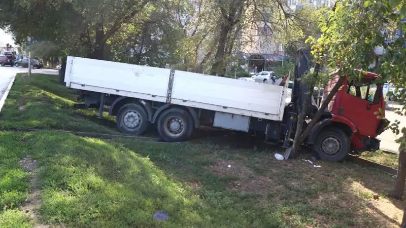 Как сообщил корреспондент Zakon.kz с места происшествия, грузовой автомобиль-манипулятор Mercedes с бордюрным камнем двигался по улице Жамакаева в северном направлении. По неизвестной причине грузовик не свернул, а продолжил движение по проспекту аль-Фараби в восточном направлении и вылетел на разделительную аллею. Он врезался в зеленые насаждения, уничтожив одно дерево и рассыпав находившиеся в кузове бордюрные блоки.