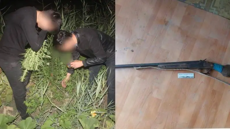 На берегу канала Елтай в Кызылорде полицейские нашли два наркопосева и оружие