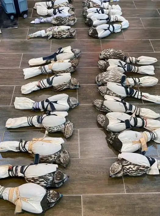 Спецоперация по задержанию членов банды проходила в аэропорту Атырау. При задержании были изъяты 28 соколов-балобанов, которых незаконным путем пытались вывезти за границу.