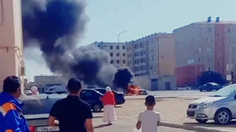 В Актау несколько громких хлопков прозвучали во время горения автомобиля