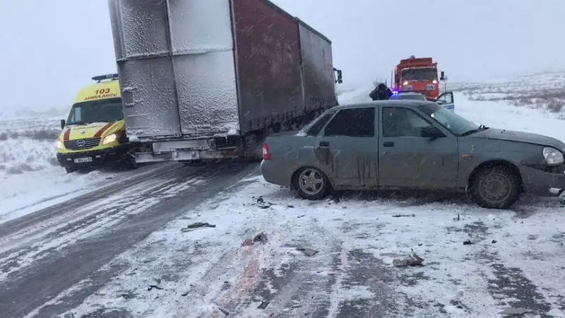 Утром 19 декабря два школьника и педагог погибли в аварии на трассе в Актюбинской области при столкновении Toyota Alphard и грузовика Volvo.