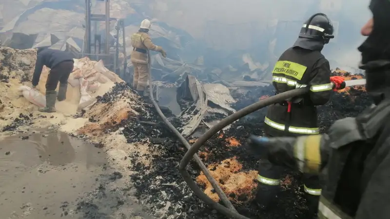 Звонок в местную пожарную службу поступил в 14:01. За полтора часа, что полыхало пламя, сельхозпроизводители лишились части здания, оборудования и продукции, - сгорело 240 тонн риса, передает корреспондент Zakon.kz.