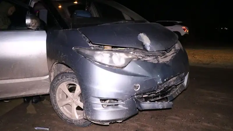 Как рассказал водитель Toyota, он, выезжая из поселка Кошмамбет, заметил на обочине припаркованный Chevrolet Cobalt, из-за которого неожиданно на проезжую часть выскочил мужчина.