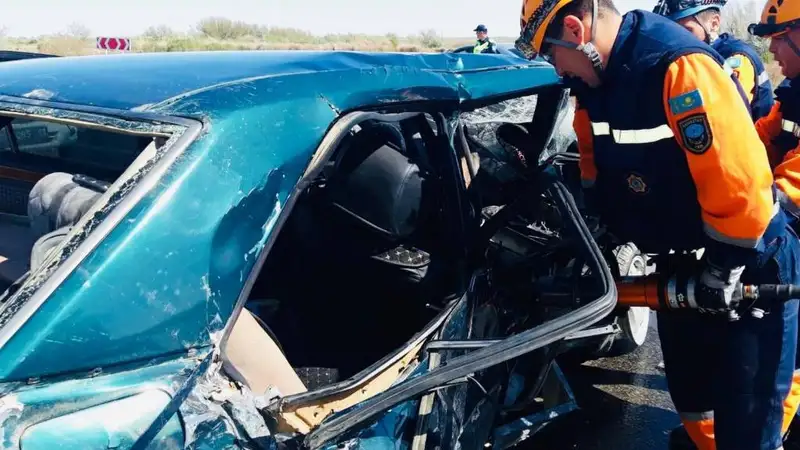 Попавших в жуткое ДТП в Кызылординской области женщин извлекли из авто спасатели