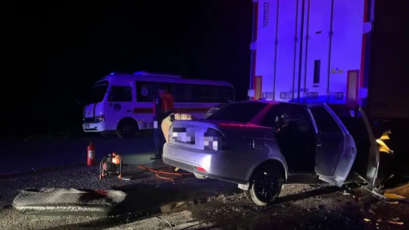 Как сообщили в пресс-службе ДП Актюбинской области, автомашина ВАЗ врезалась в попутно двигавшийся грузовик МАN. В результате водитель ВАЗа и двое его пассажиров скончались. Вытаскивали их из машины при помощи гидравлического оборудования.