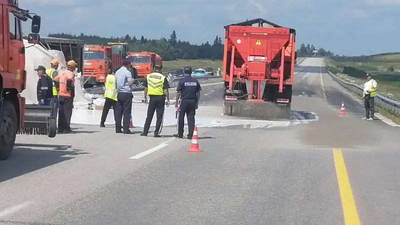 Опрокинулась фура с клеем: движение по трассе Астана-Петропавловск восстановили