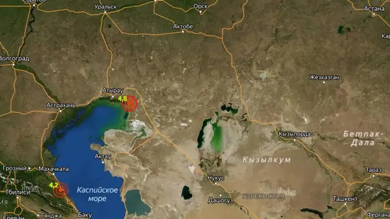 Эпицентр располагался в 140 км на юго-восток от города Атырау.