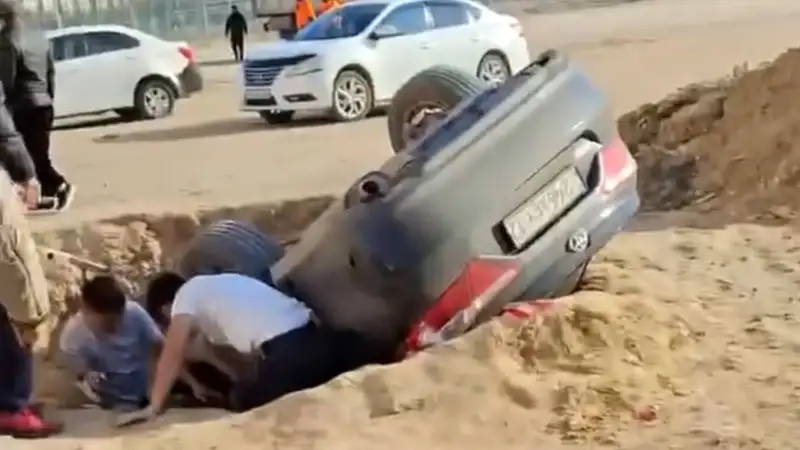Каким образом мужчина оказался в выкопанной коммунальщиками яме, пока неизвестно. Доставать машину пришлось с помощью крана.