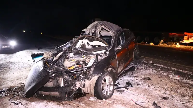 "10 декабря в 01:00 на 136 км автодороги Алматы – Бишкек произошло дорожно-транспортное происшествие. По предварительным данным, 40-летний водитель автомобиля Kia Optima, выехав на полосу встречного движения, допустил столкновение с грузовым транспортным средством Volvo FH. В результате аварии водитель легкового автомобиля и двое его пассажиров скончались на месте, еще один пассажир с различными травмами был доставлен в ближайшую больницу. По данному факту сотрудники полиции начали досудебное расследование".