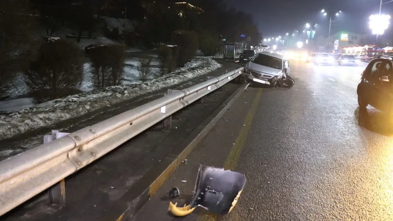 Автомобили столкнулись вскользь, что привело к серьезным повреждениям обеих машин. У Toyota Windom оторвало колесо, и она продолжила движение еще около 100 метров. Toyota Corolla отлетела в другую сторону и врезалась в отбойник.