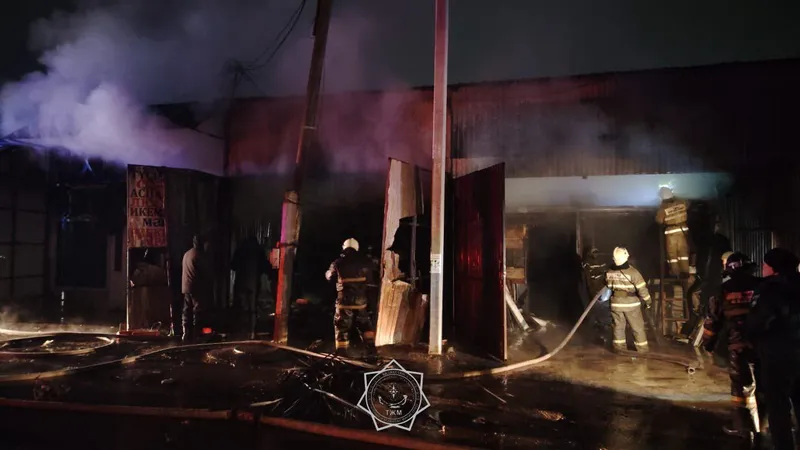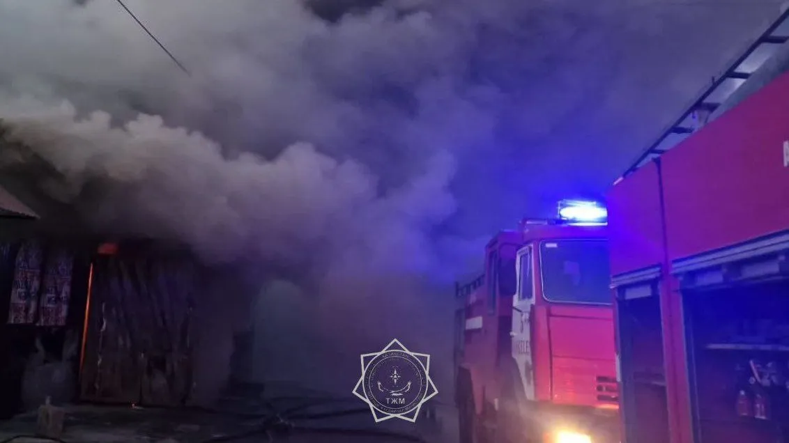 Крупный пожар разгорелся на рынке строительных материалов в Каскелене