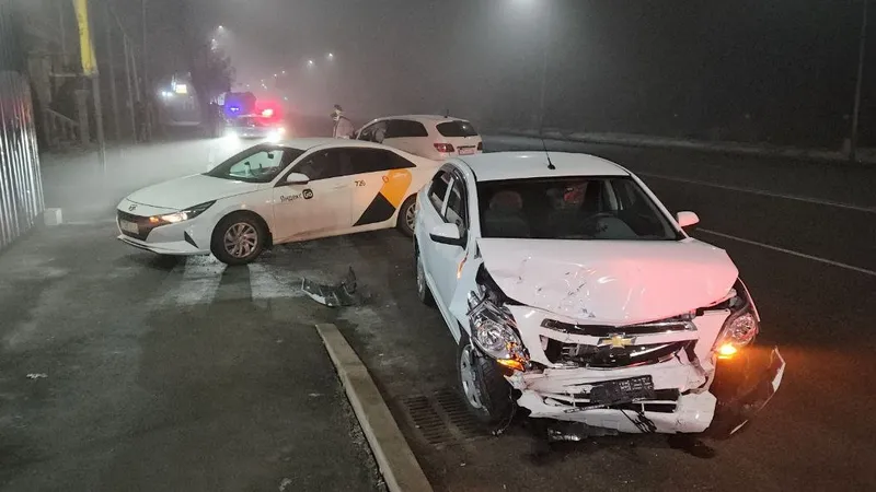 Из-за тумана и гололеда в какой-то момент водитель не справился с управлением, из-за чего машина выехала на полосу встречного движения, где Mercedes лоб в лоб столкнулся с Chevrolet Cobalt.