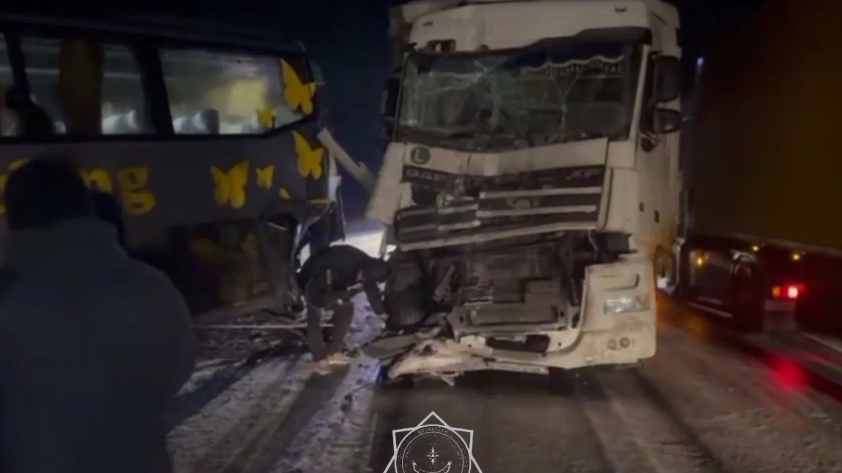 Столкновение пассажирского автобуса и грузового автомобиля случилось в Актюбинской области ночью 2 марта 2025 года, сообщает Zakon.kz.