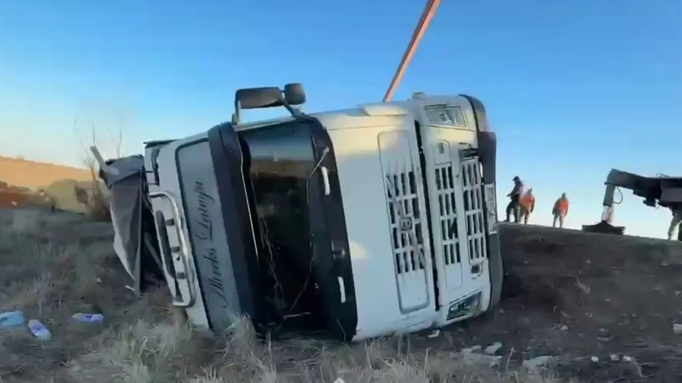 ДТП случилось на 357 км автодороги "Актобе – Уральск – граница РФ". Фура, груженная одеждой, которая направлялась из Кыргызстана в Москву, слетела в кювет.