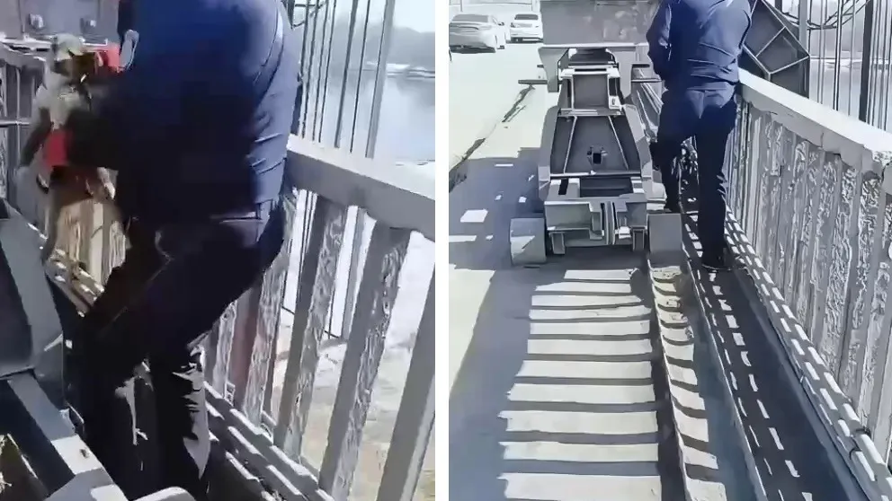 Участковый спас щенков, оказавшихся на опасном мосту в Семее