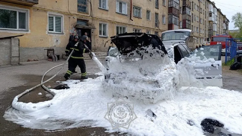 Автомобиль вспыхнул во дворе жилой многоэтажки в Петропавловске