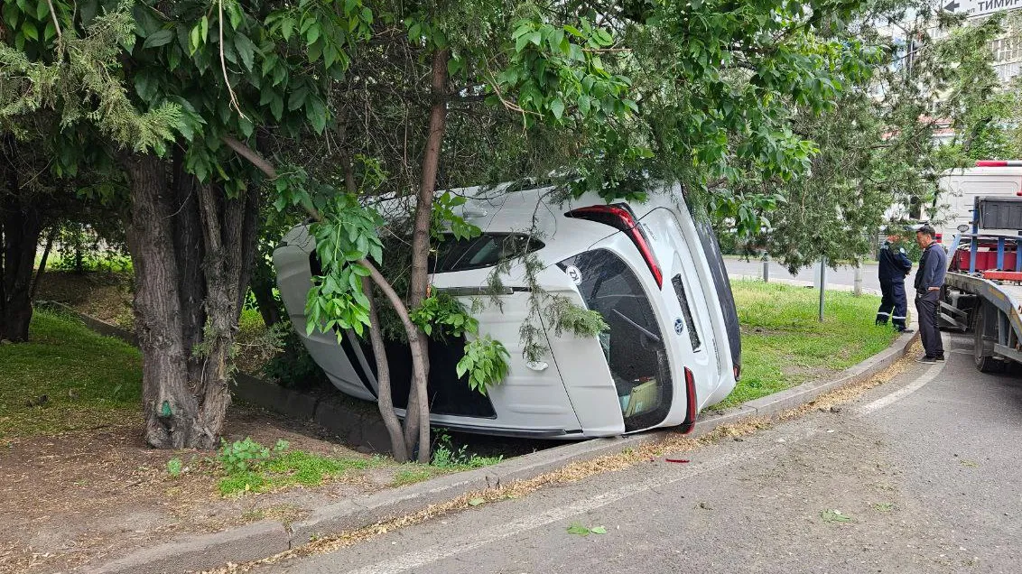 По всей видимости, осознав, что ей навстречу едут автомобили, водитель испугалась и увела руль в сторону аллеи, где, заскочив на локацию через бордюр, автомобиль врезался в дерево.