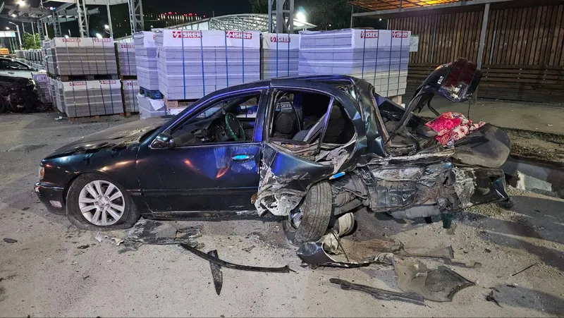 От мощного удара Cefiro отбросило в сторону на паллеты со строительным материалом с бетонными блоками, а Toyota Camry пронесло вперед, где автомобиль также врезался в блоки.
