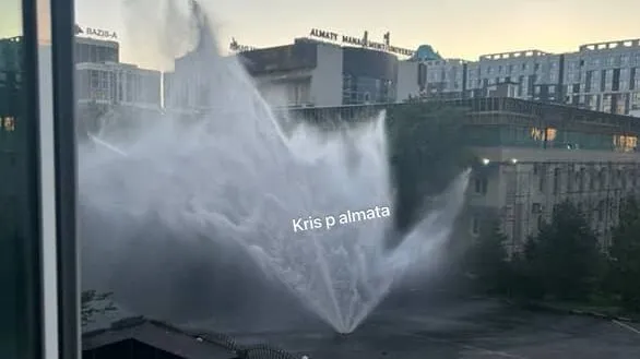 Бьющий из-под земли фонтан сняли на видео жители Алматы