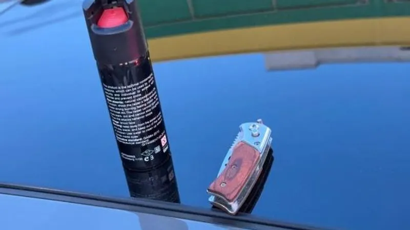 При обысках найдены семь радиостанций, включая одну для служебной связи полиции, ножи, перцовый баллончик и бейсбольная бита. Также обнаружено около 10-ти автомобильных номерных знаков, предположительно, из ближнего зарубежья.