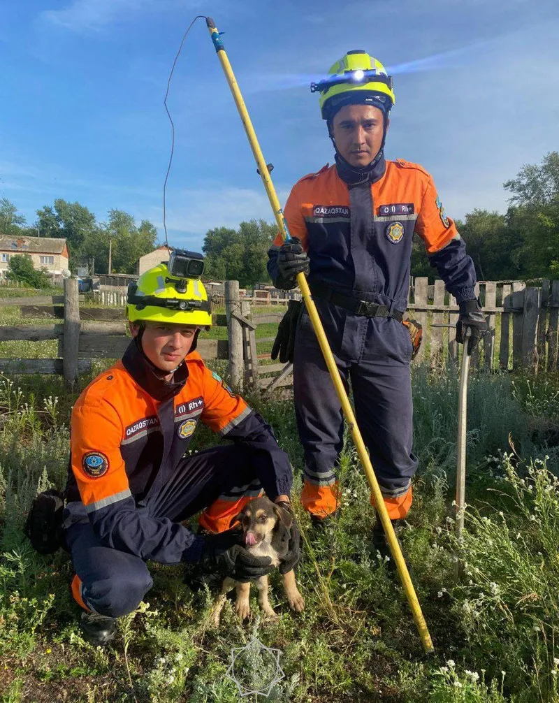 По информации пресс-службы МЧС РК, с помощью специального шанцевого инструмента для отлова животных спасатели аккуратно извлекли испуганного щенка из западни.
