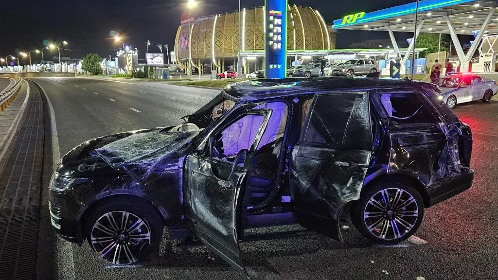 Range Rover двигался по крайней левой полосе южнее ул. Аскарова. И после затяжного, но плавного поворота водитель пока по невыясненным причинам задел бордюр.