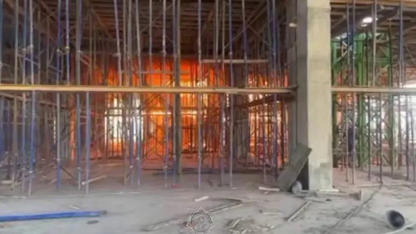 Крупный пожар разгорелся в строящейся 12-этажке в Шымкенте