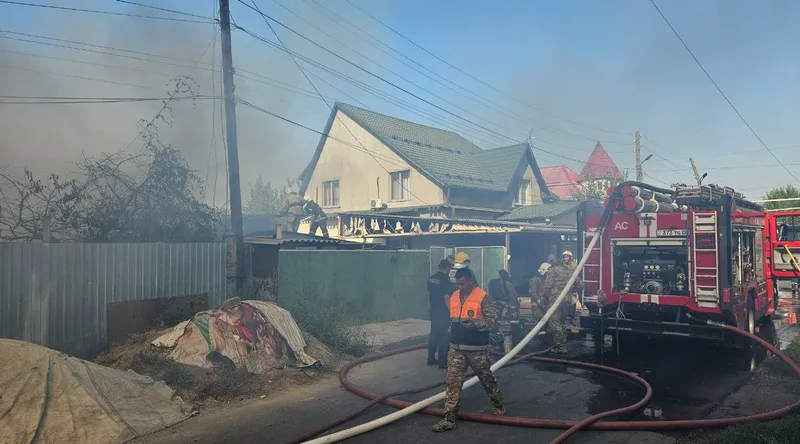 Днем 23 июля 2025 года в частном секторе Алматы разгорелся крупный пожар. К счастью, никто не пострадал. Другие подробности Zakon.kz озвучили в пресс-службе Департамента по чрезвычайным ситуациям (ДЧС) города.