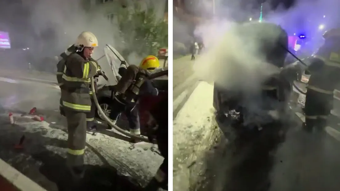 Автомобиль вспыхнул возле жилого дома в Алматы