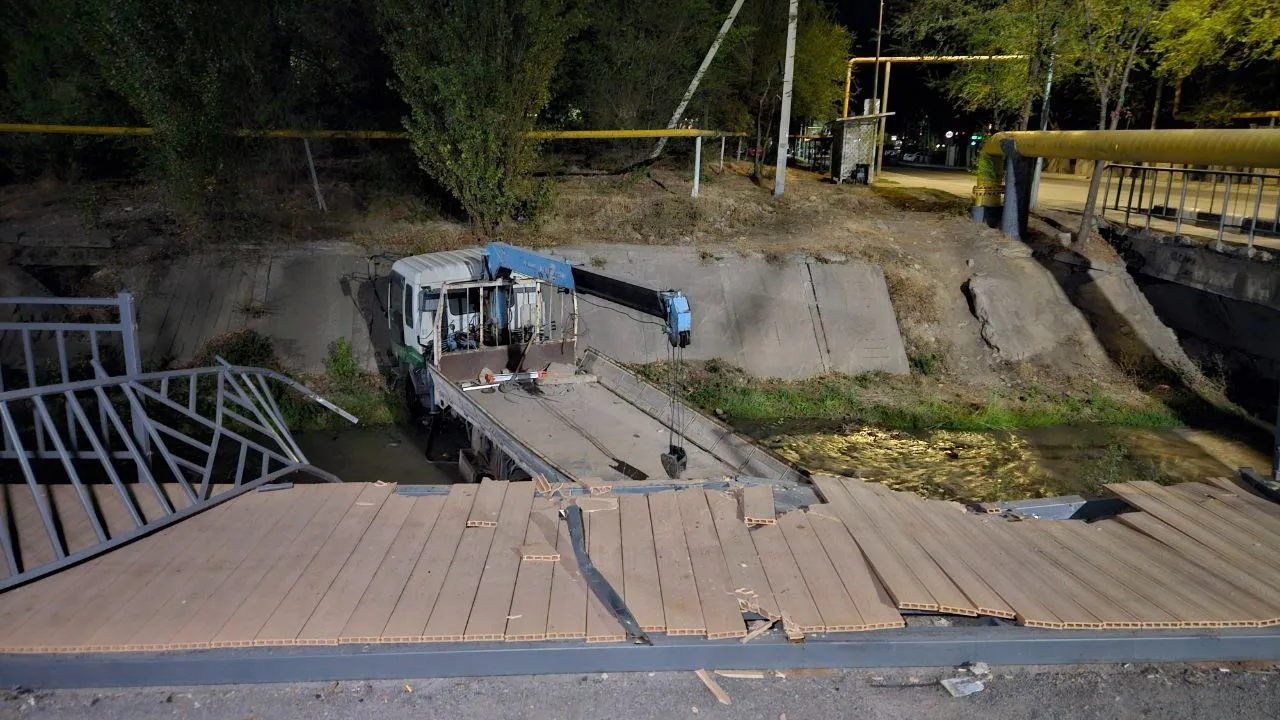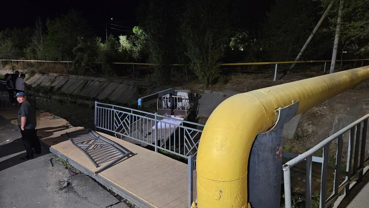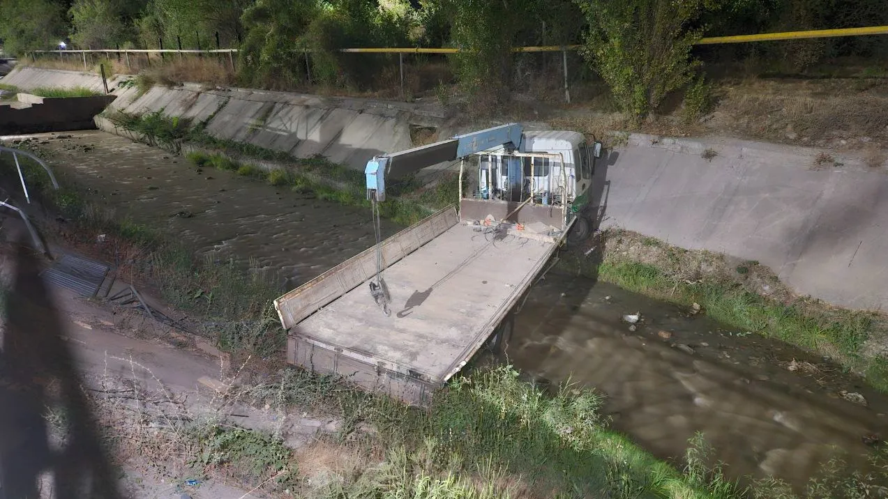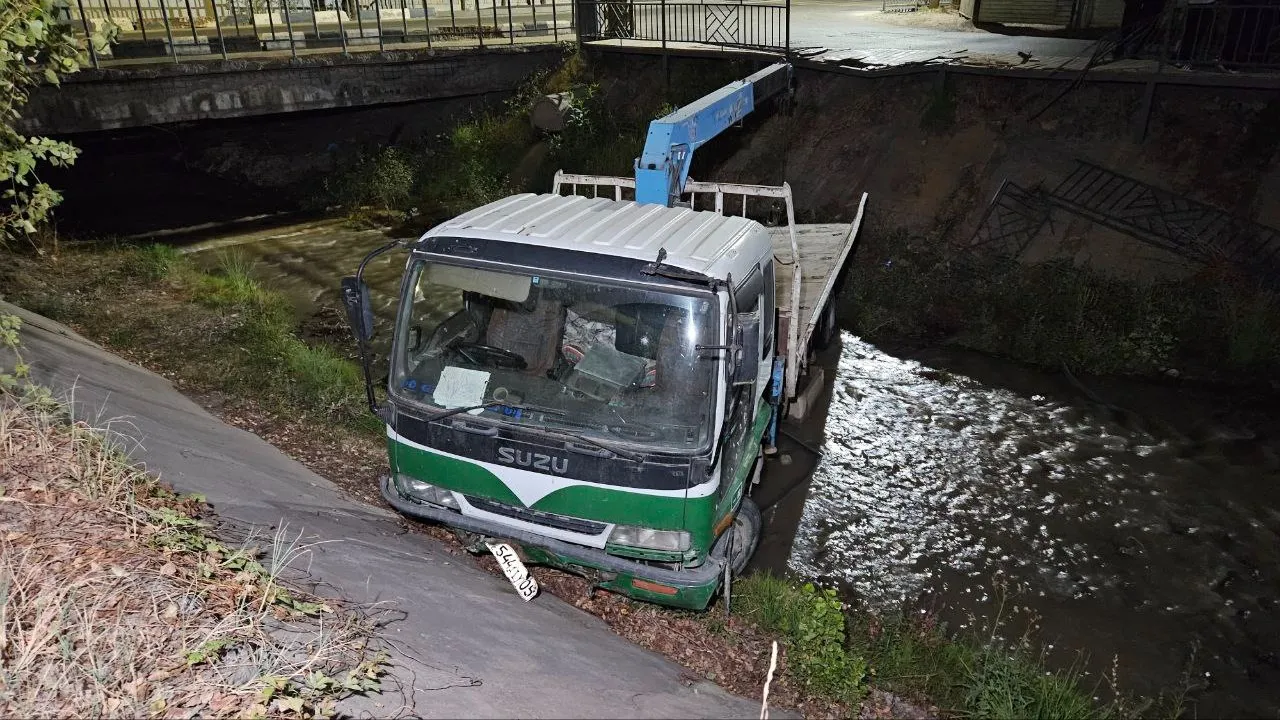 Манипулятор на скорости вылетел с дороги и упал в горную речку в Алматы