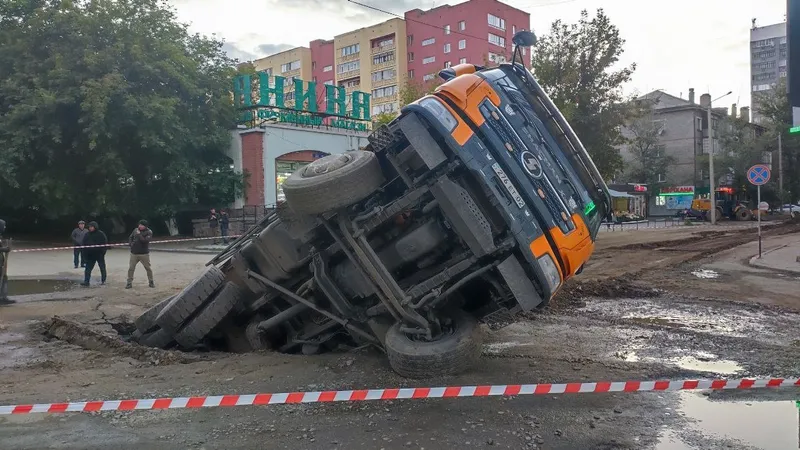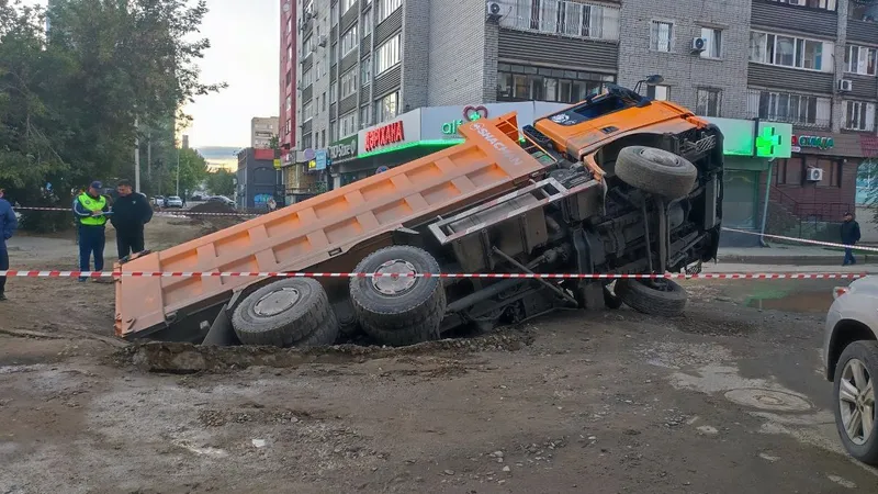 В Семее 15-тонник с грузом угодил в яму в результате коммунальной аварии