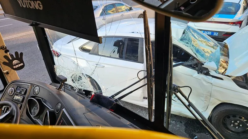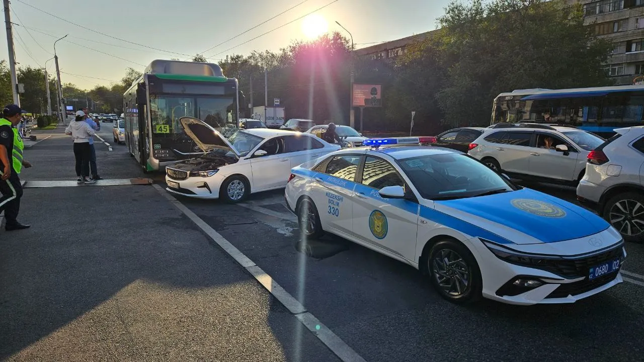 Авария случилась на участке между улицами Алтынсарина и Навои. По предварительным данным, оба транспортных средства двигались в восточном направлении. Автобус ехал по выделенной полосе, рядом с ним двигался Geely.