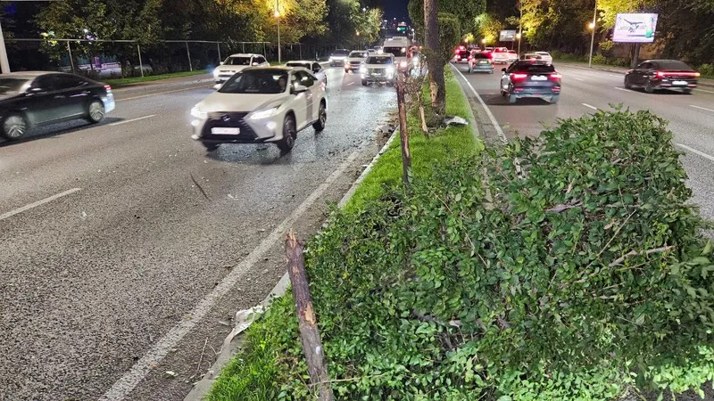 Легковушка протаранила деревья и врезалась во встречное авто в Алматы