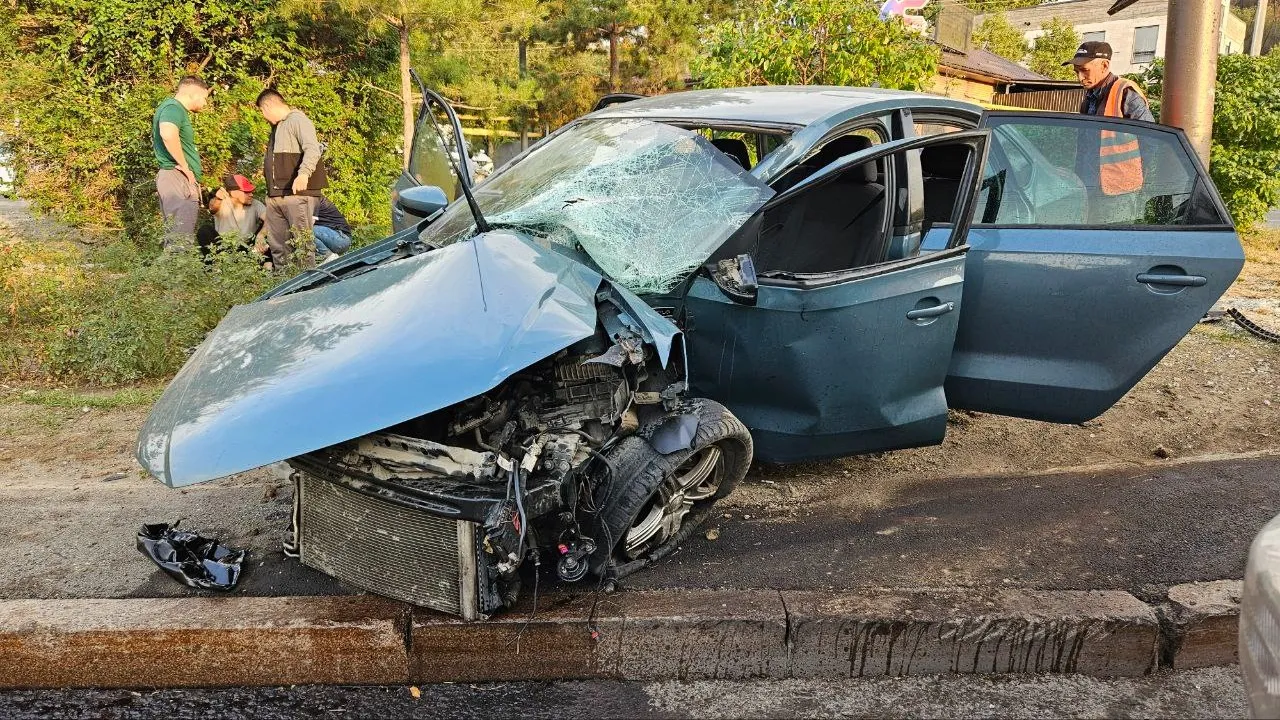 Накануне, 21 сентября, в Алматы легковушка протаранила деревья и врезалась во встречное авто.