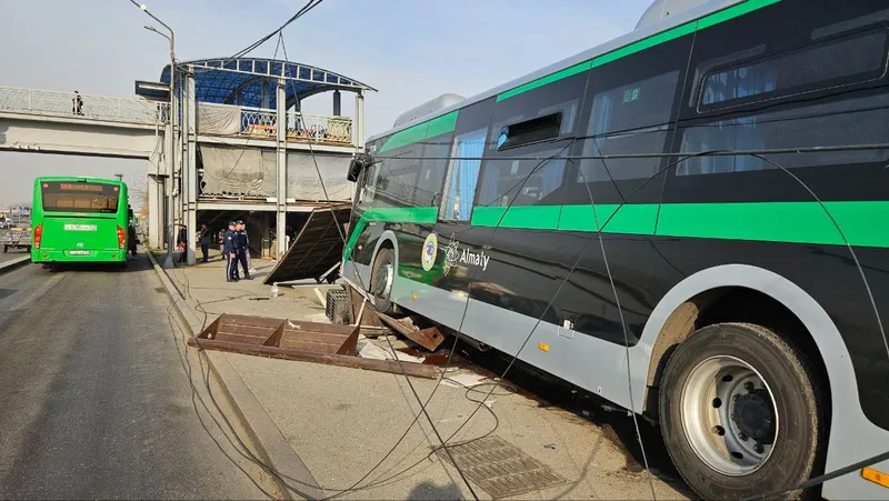На барахолке в Алматы автобус снес остановку: пострадали пешеход и ребенок