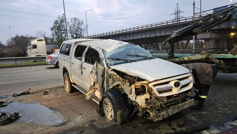 Пока по невыясненным обстоятельствам Toyota Hilux врезался в заднюю часть Hyundai.