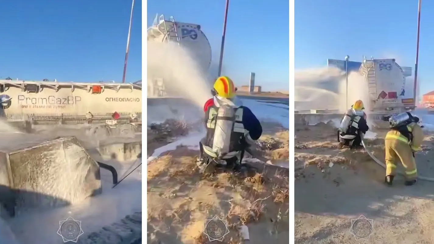 Как рассказали в МЧС РК, огонь быстро распространялся по колесам, создавая угрозу взрыва цистерны.