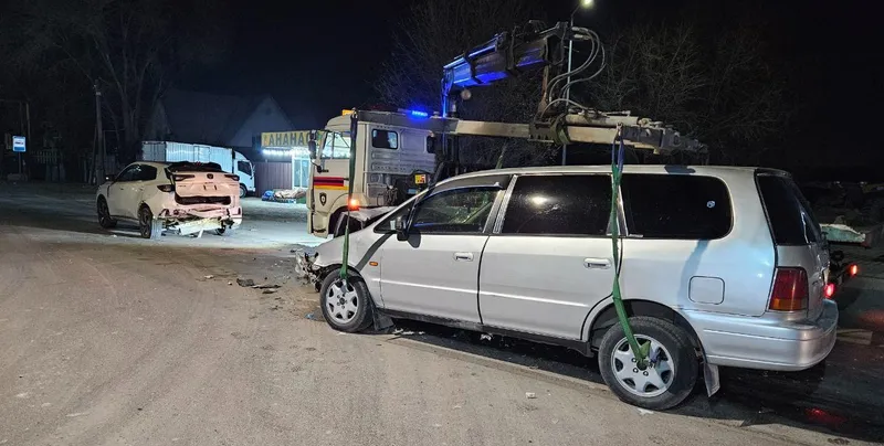 Кроссовер Changan CS двигался по Бурундайскому шоссе в северном направлении и остановился для совершения левого поворота. В момент пропуска встречного транспорта в него на полном ходу влетел минивэн Honda Odyssey.