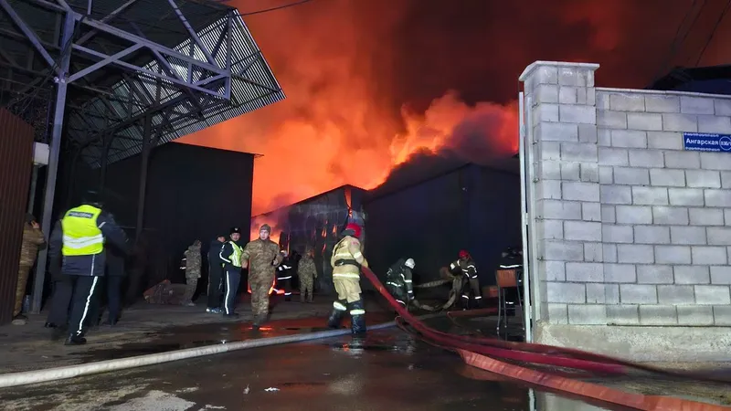 Крупный пожар охватил склады в Алматы